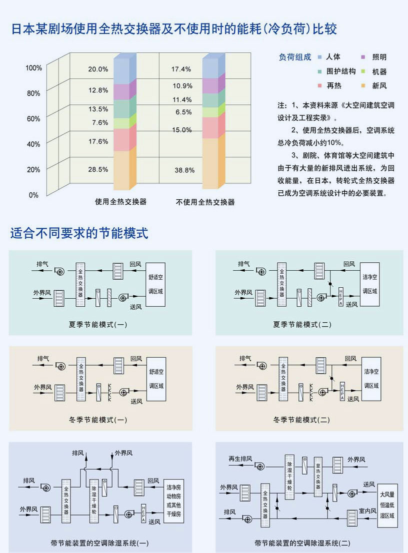 日本某劇場(chǎng)使用全熱交換器及不使用時(shí)的能耗(冷負(fù)荷)比較